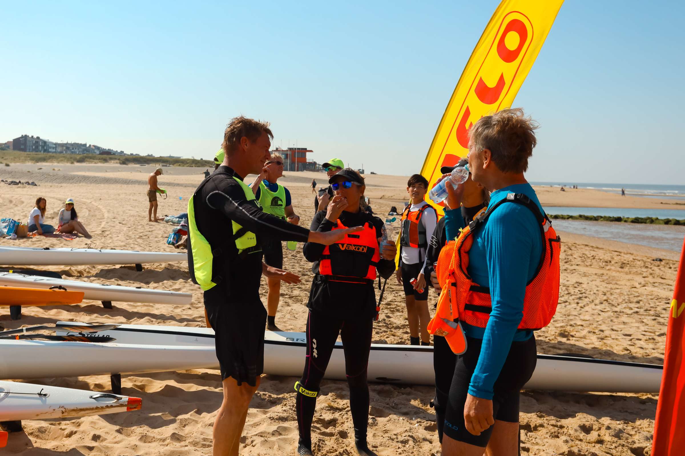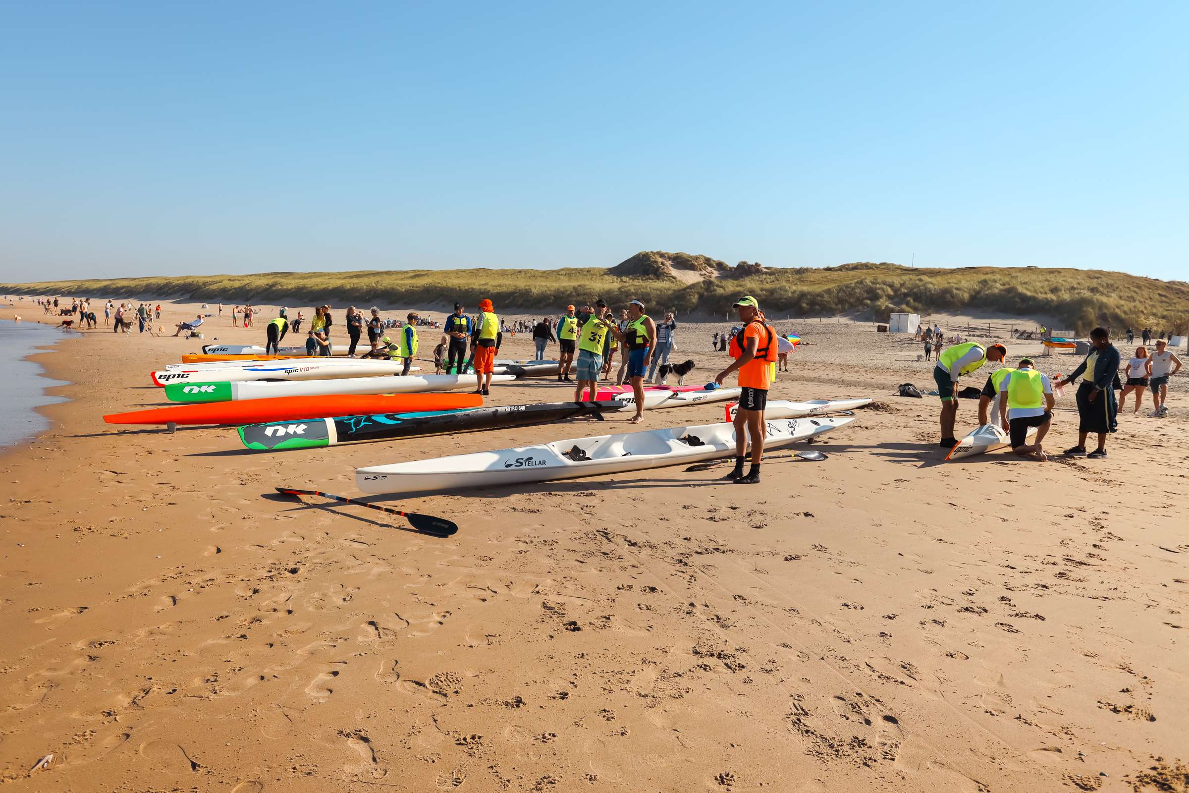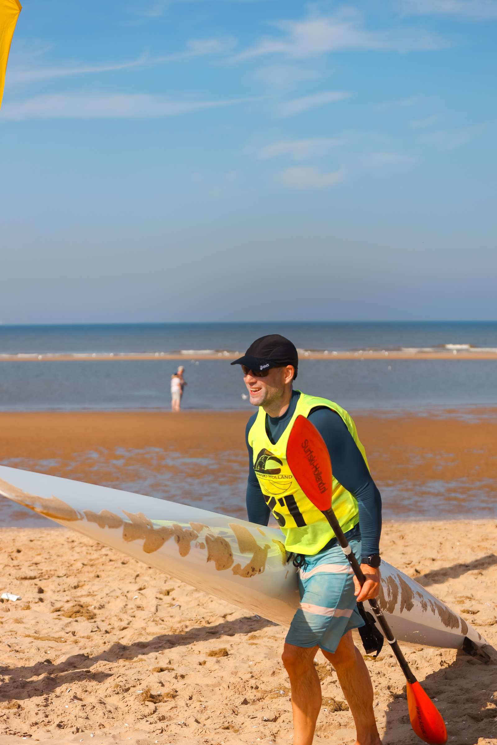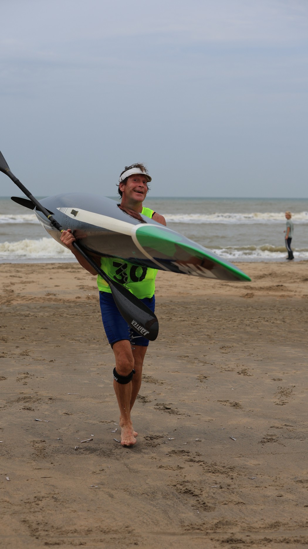 Op de dag dat de herfst begon, waren het zomerse taferelen bij de 7e Bollenboyscup. De zee was bijna vlak, met hier en daar een kleine deining. De temperatuur was perfect, wat resulteerde in een geweldige opkomst van 19 surfski-wedstrijdpeddelaars. Het was fantastisch! Voor sommigen was het een flinke strijd over de korte afstand van 12 kilometer, met een zeewatertemperatuur van 17 graden was het behoorlijk warm daarboven in de stralende zon. Na de finish overal blije gezichten. Genoten van lunch en drankjes met een enthousiaste groep surfski-atleten bij Strandpaviljoen Willy Noord, waarmee we een succesvolle dag afsloten. Ons motto is; houd het simpel met zoveel mogelijk plezier. Ik denk dat dat is gelukt. Dank aan tijdwaarnemers Heidy en Gitta, Arjan Bloem van Kayak.nl voor alle prijzen. Hans Smits voor de startlijsten en Martien Heemskerk voor de co-sponsoring. Lifeguards van de Reddingbrigade Katwijk, de honingbijen die de honing voor de potten verzamelden. Vooral alle deelnemers, bedankt voor jullie komst! Tot volgend jaar Bollenboyscup 2025. Zet de datum vast: zaterdag 20 september. Foto’s door Siarhei Bars.