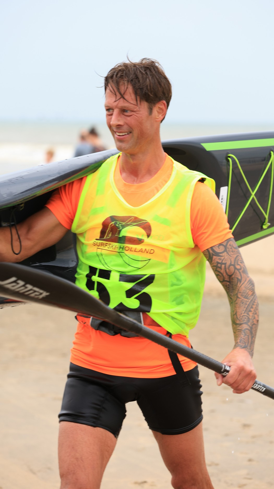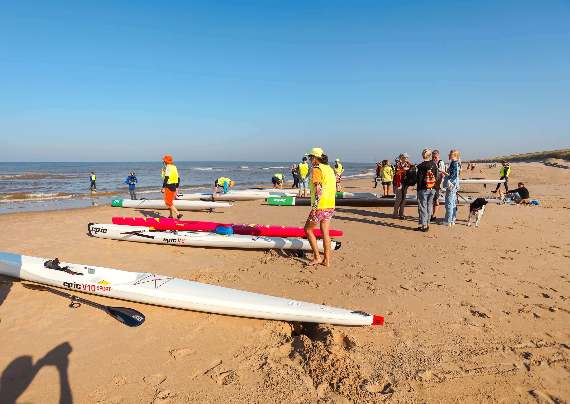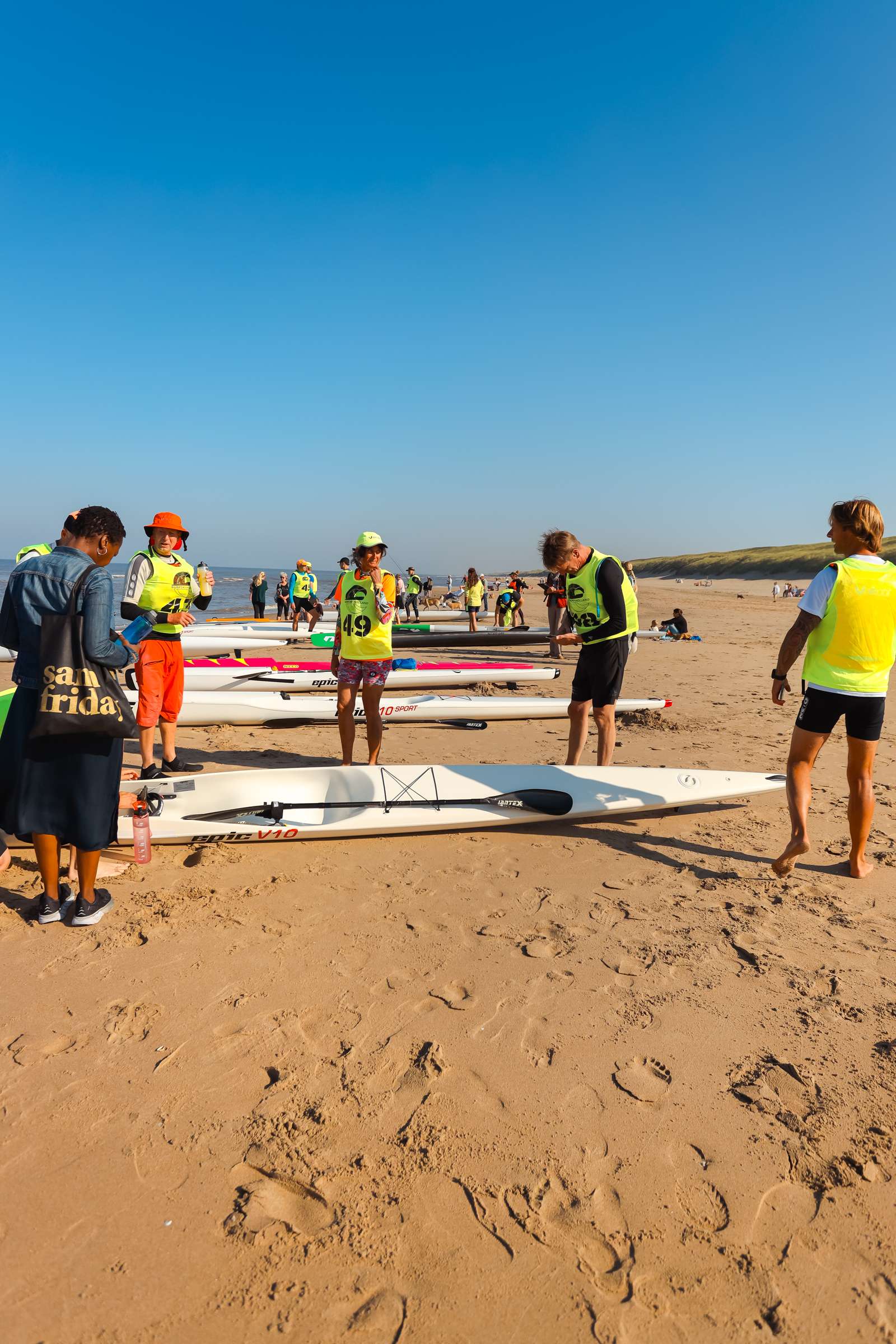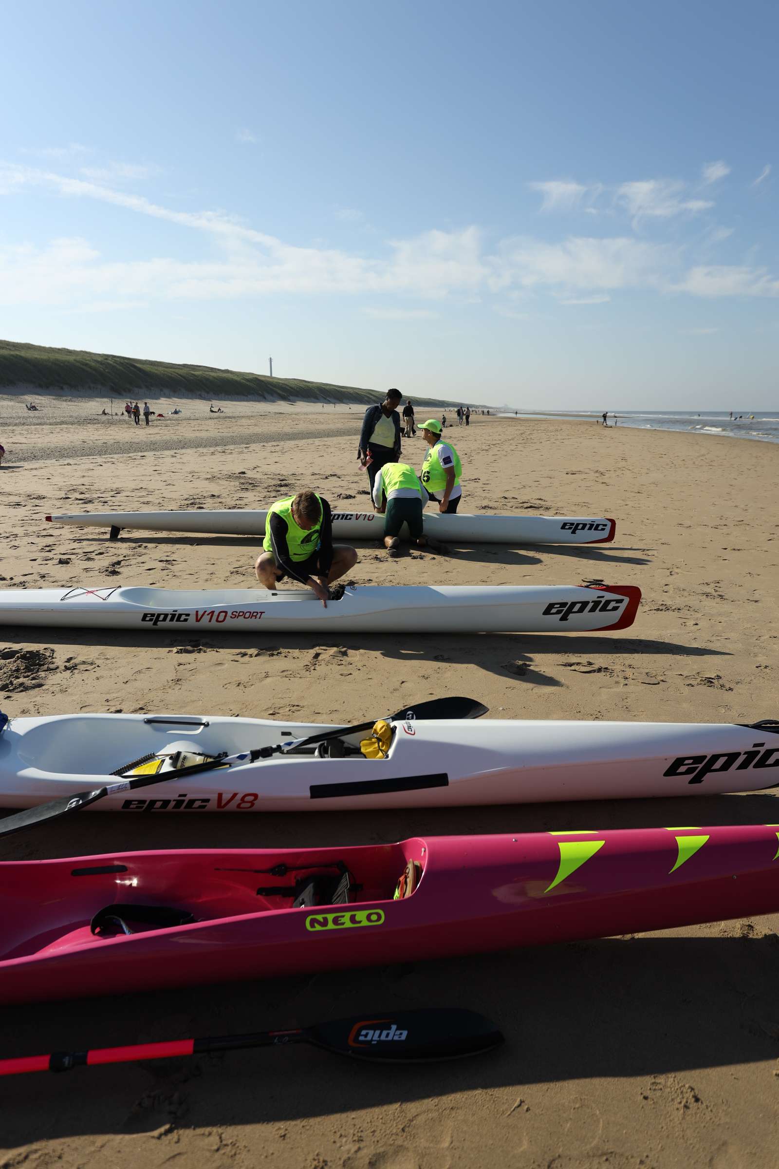 Op de dag dat de herfst begon, waren het zomerse taferelen bij de 7e Bollenboyscup. De zee was bijna vlak, met hier en daar een kleine deining. De temperatuur was perfect, wat resulteerde in een geweldige opkomst van 19 surfski-wedstrijdpeddelaars. Het was fantastisch! Voor sommigen was het een flinke strijd over de korte afstand van 12 kilometer, met een zeewatertemperatuur van 17 graden was het behoorlijk warm daarboven in de stralende zon. Na de finish overal blije gezichten. Genoten van lunch en drankjes met een enthousiaste groep surfski-atleten bij Strandpaviljoen Willy Noord, waarmee we een succesvolle dag afsloten. Ons motto is; houd het simpel met zoveel mogelijk plezier. Ik denk dat dat is gelukt. Dank aan tijdwaarnemers Heidy en Gitta, Arjan Bloem van Kayak.nl voor alle prijzen. Hans Smits voor de startlijsten en Martien Heemskerk voor de co-sponsoring. Lifeguards van de Reddingbrigade Katwijk, de honingbijen die de honing voor de potten verzamelden. Vooral alle deelnemers, bedankt voor jullie komst! Tot volgend jaar Bollenboyscup 2025. Zet de datum vast: zaterdag 20 september. Foto’s door Siarhei Bars.