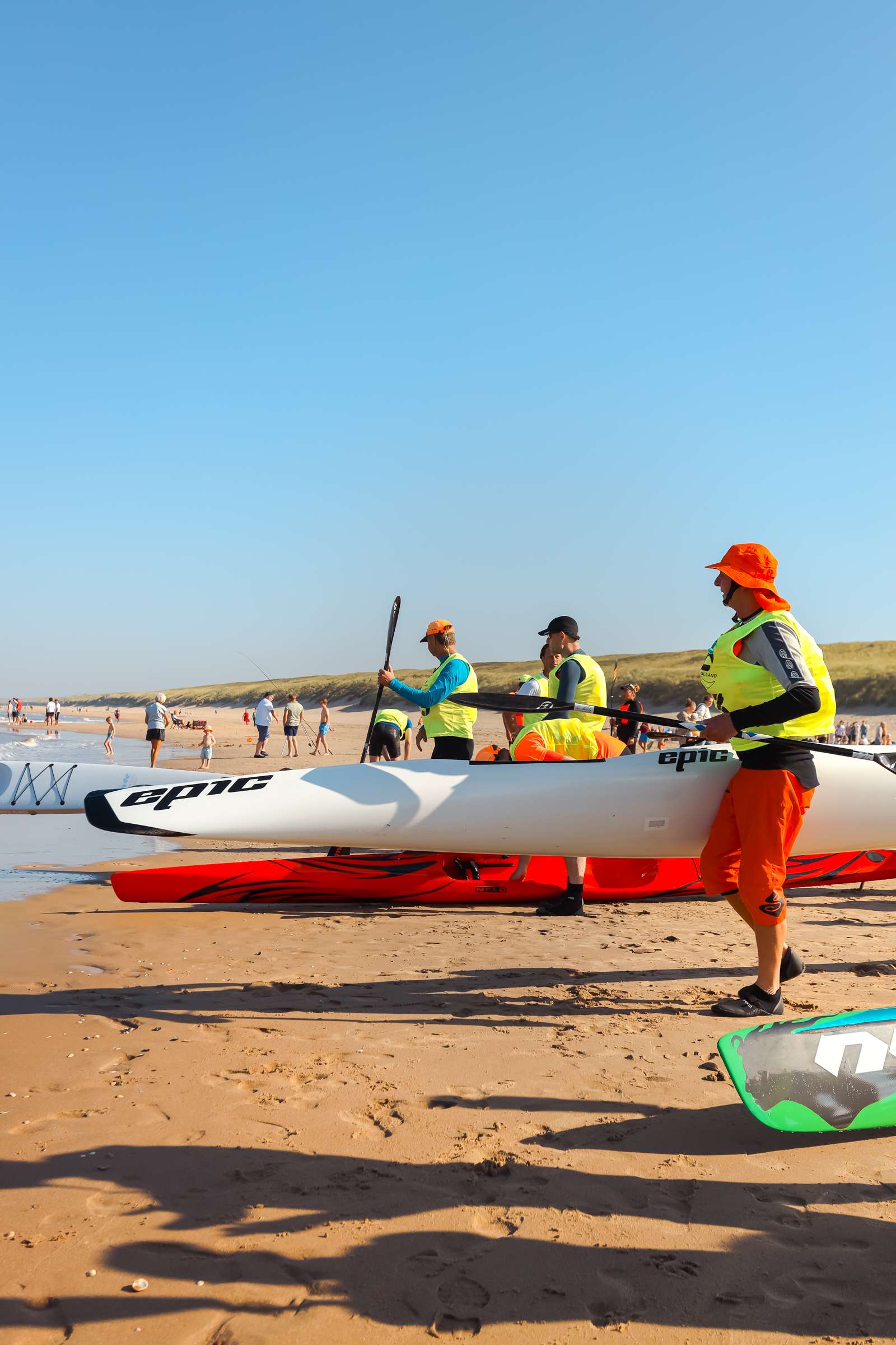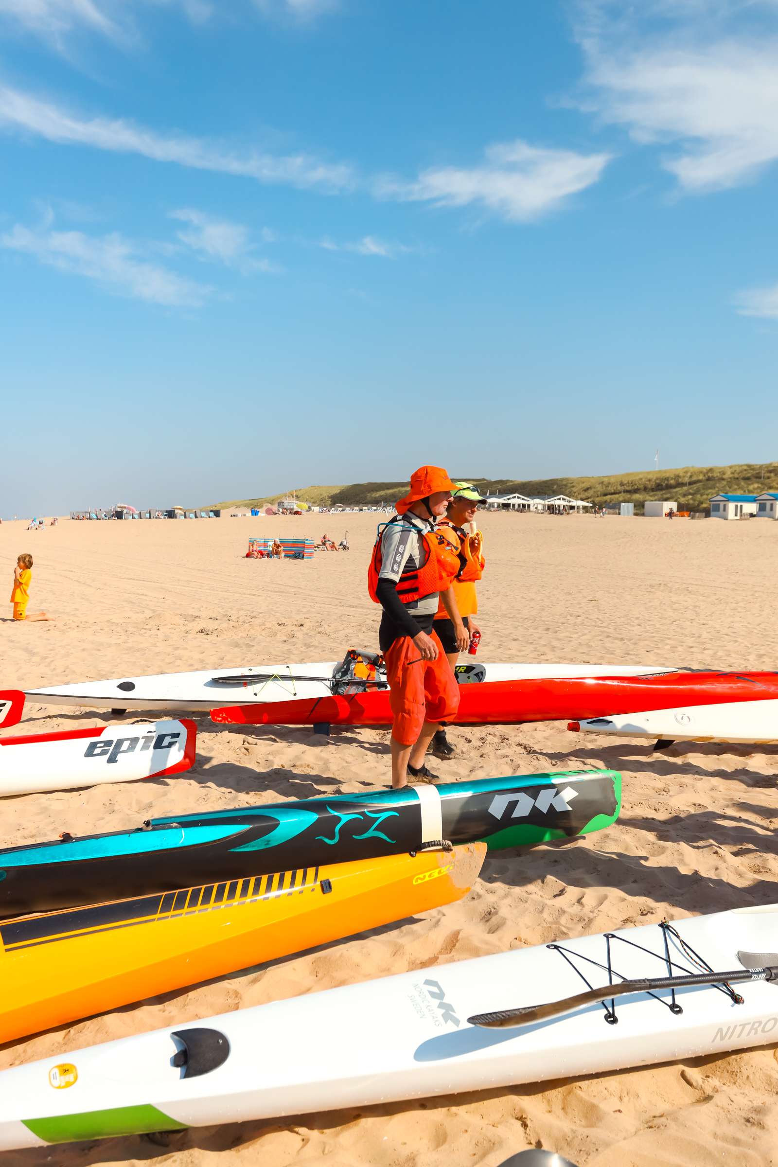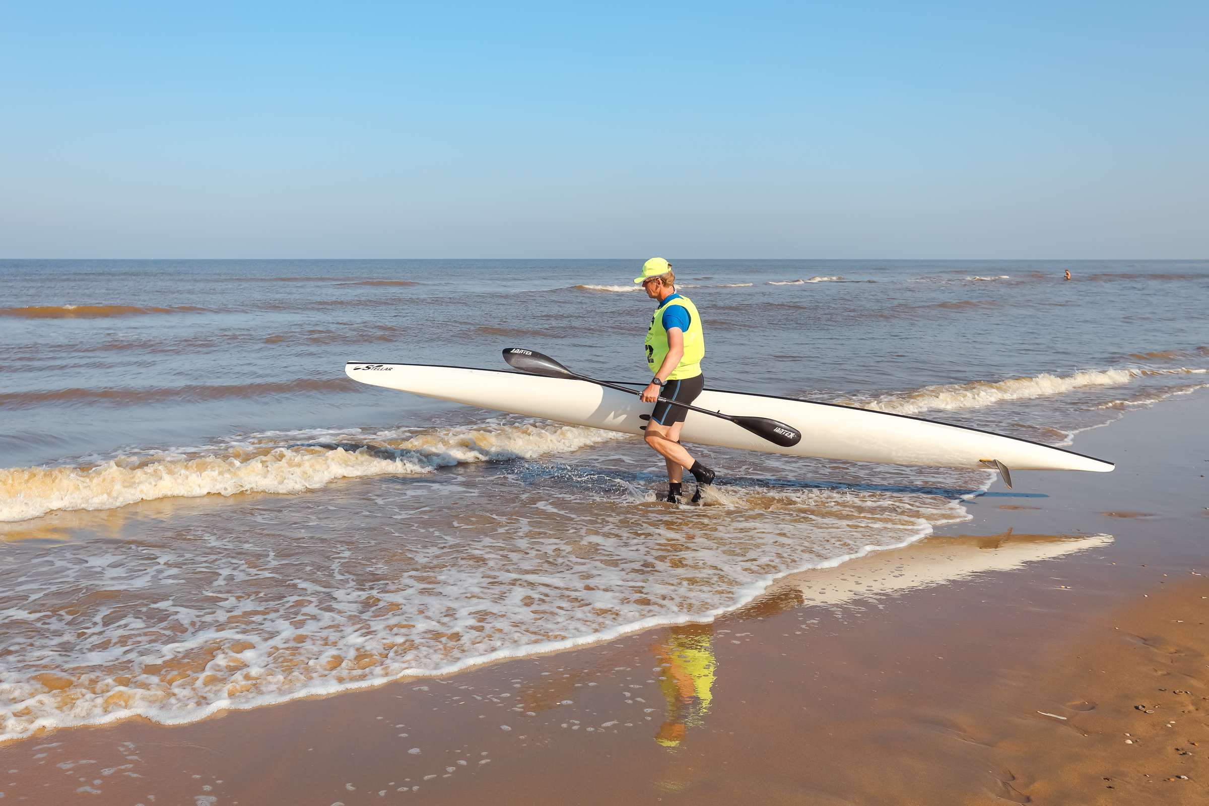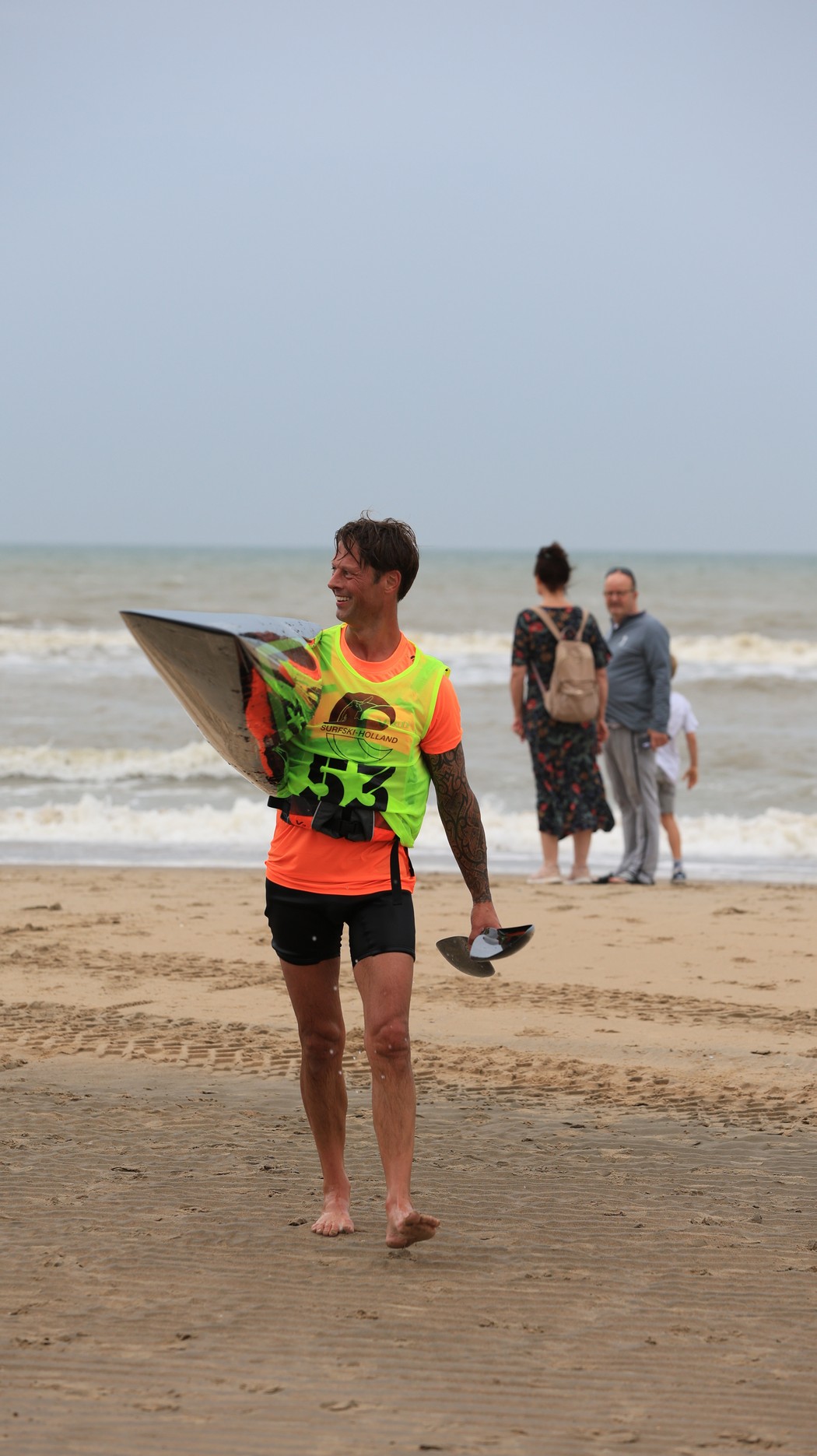 Op de dag dat de herfst begon, waren het zomerse taferelen bij de 7e Bollenboyscup. De zee was bijna vlak, met hier en daar een kleine deining. De temperatuur was perfect, wat resulteerde in een geweldige opkomst van 19 surfski-wedstrijdpeddelaars. Het was fantastisch! Voor sommigen was het een flinke strijd over de korte afstand van 12 kilometer, met een zeewatertemperatuur van 17 graden was het behoorlijk warm daarboven in de stralende zon. Na de finish overal blije gezichten. Genoten van lunch en drankjes met een enthousiaste groep surfski-atleten bij Strandpaviljoen Willy Noord, waarmee we een succesvolle dag afsloten. Ons motto is; houd het simpel met zoveel mogelijk plezier. Ik denk dat dat is gelukt. Dank aan tijdwaarnemers Heidy en Gitta, Arjan Bloem van Kayak.nl voor alle prijzen. Hans Smits voor de startlijsten en Martien Heemskerk voor de co-sponsoring. Lifeguards van de Reddingbrigade Katwijk, de honingbijen die de honing voor de potten verzamelden. Vooral alle deelnemers, bedankt voor jullie komst! Tot volgend jaar Bollenboyscup 2025. Zet de datum vast: zaterdag 20 september. Foto’s door Siarhei Bars.