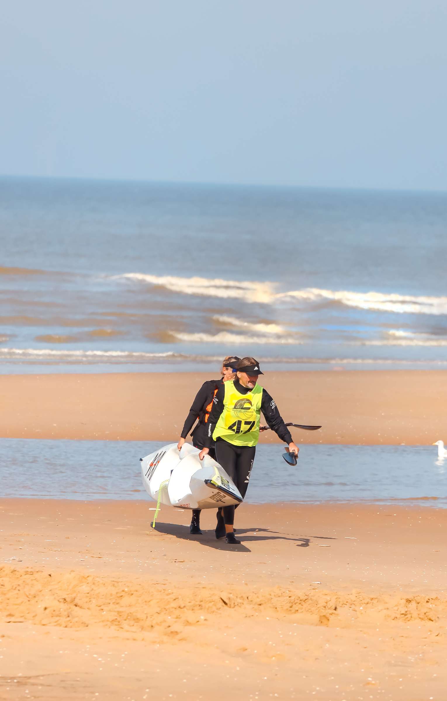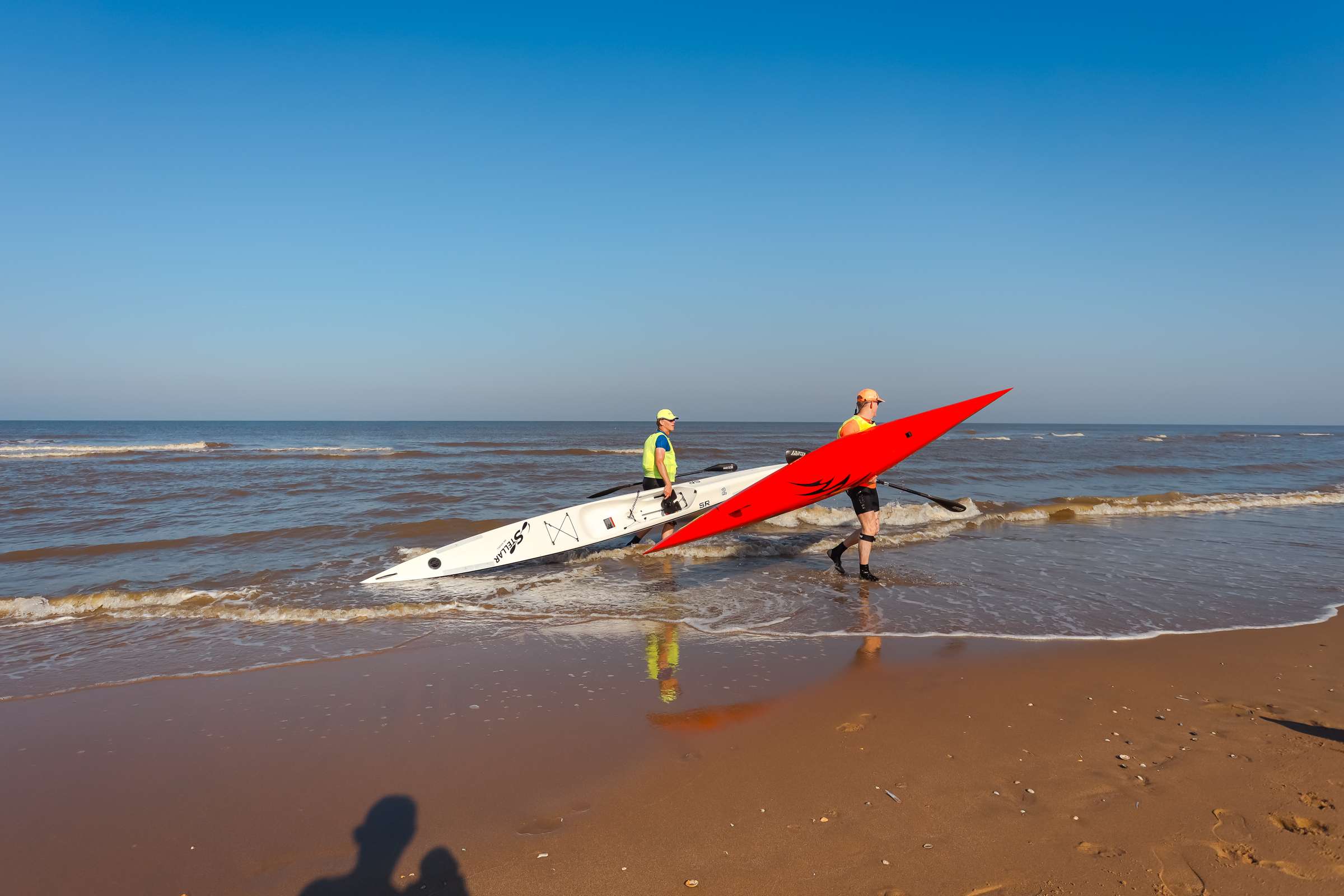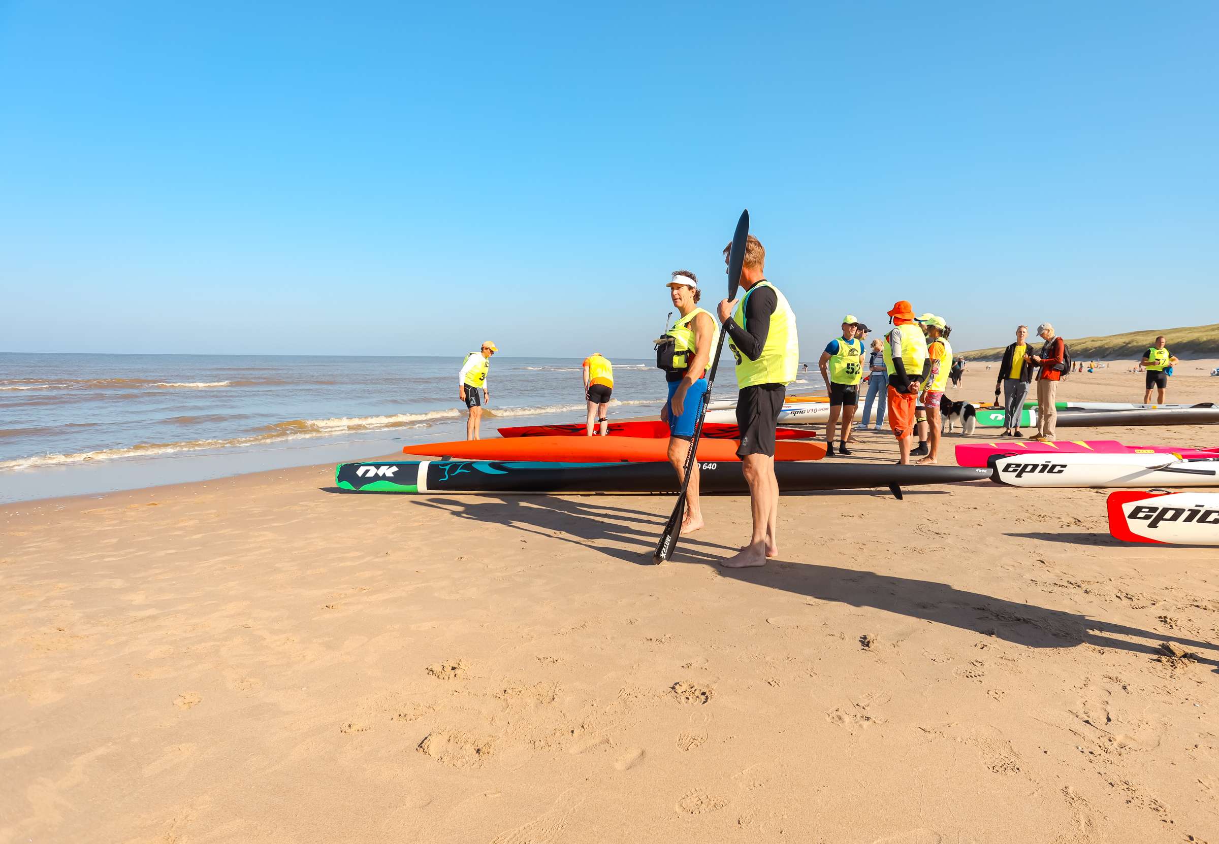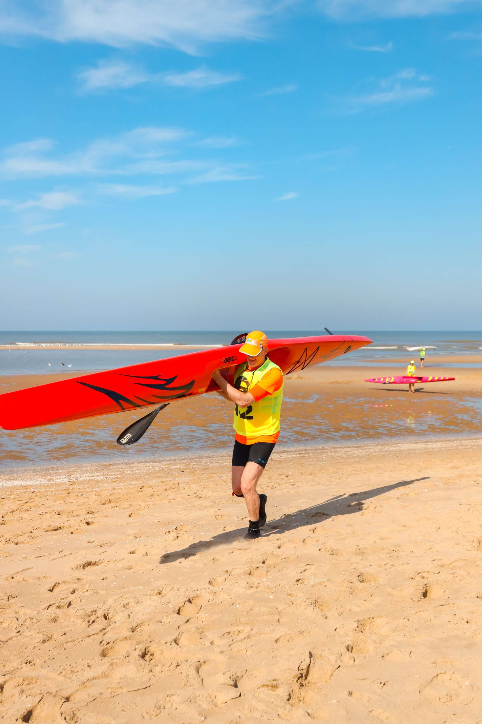 Op de dag dat de herfst begon, waren het zomerse taferelen bij de 7e Bollenboyscup. De zee was bijna vlak, met hier en daar een kleine deining. De temperatuur was perfect, wat resulteerde in een geweldige opkomst van 19 surfski-wedstrijdpeddelaars. Het was fantastisch! Voor sommigen was het een flinke strijd over de korte afstand van 12 kilometer, met een zeewatertemperatuur van 17 graden was het behoorlijk warm daarboven in de stralende zon. Na de finish overal blije gezichten. Genoten van lunch en drankjes met een enthousiaste groep surfski-atleten bij Strandpaviljoen Willy Noord, waarmee we een succesvolle dag afsloten. Ons motto is; houd het simpel met zoveel mogelijk plezier. Ik denk dat dat is gelukt. Dank aan tijdwaarnemers Heidy en Gitta, Arjan Bloem van Kayak.nl voor alle prijzen. Hans Smits voor de startlijsten en Martien Heemskerk voor de co-sponsoring. Lifeguards van de Reddingbrigade Katwijk, de honingbijen die de honing voor de potten verzamelden. Vooral alle deelnemers, bedankt voor jullie komst! Tot volgend jaar Bollenboyscup 2025. Zet de datum vast: zaterdag 20 september. Foto’s door Siarhei Bars.