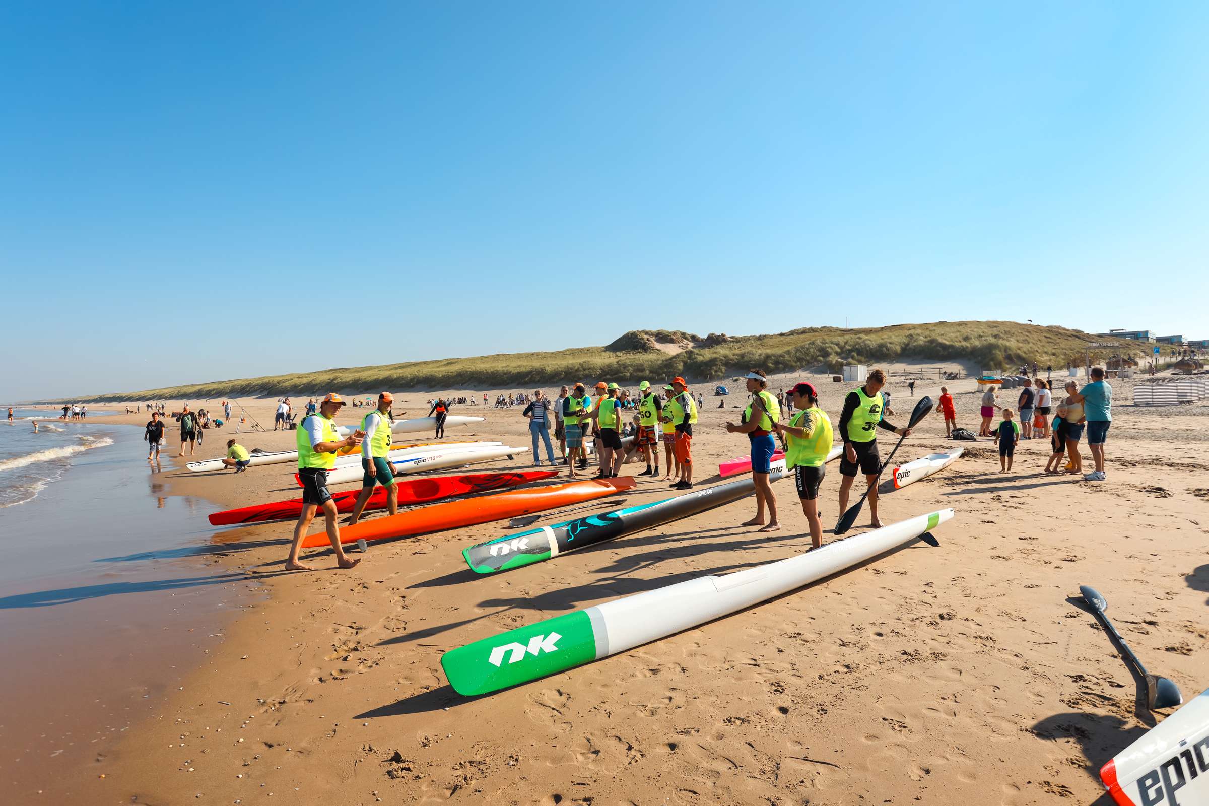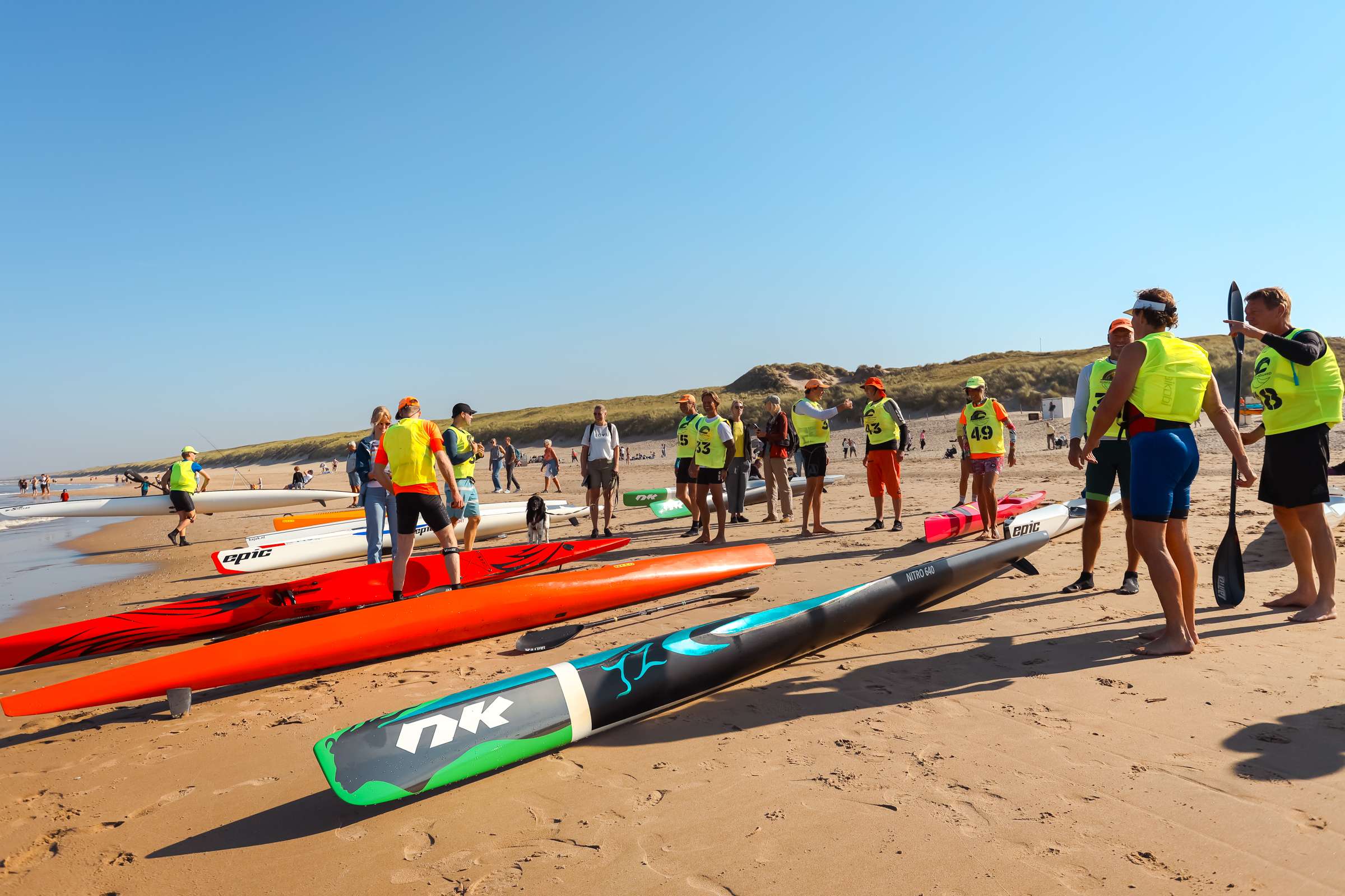 On the day Autumn began, it was Summer scenes at the 7th Bollenboyscup. The Sea was almost flat with a little swell here and there. The temperature couldn’t be faulted, which resulted in what for us was a great turnout of 19 surfski competition paddlers. It was great! For some, it was quite a battle on the short distance of 12 kilometres with Sea water temperature of 17 degrees, it was quite warm up there in the blazing sunshine. After the finish, happy faces everywhere. Enjoyed lunch and drinks with an enthusiastic group of Surfski athletes at Strand pavilion Willy Noord ending a successful day. Our motto is; keep it simple with as much fun as possible. I think we succeeded in that. Thanks to timekeeper Heidy and Gitta, Arjan Bloem of Kayak.nl for all the prizes. Hans Smits for the start lists and Martien Heemskerk for co-sponsoring. Lifesavers of the Reddingbrigade Katwijk The honeybees who collected the honey for the jars. Especially all participants, thank you for coming! See you next year Bollenboyscup 2025. Safe the date Saturday 20 September. Pictures by Siarhei Bars.