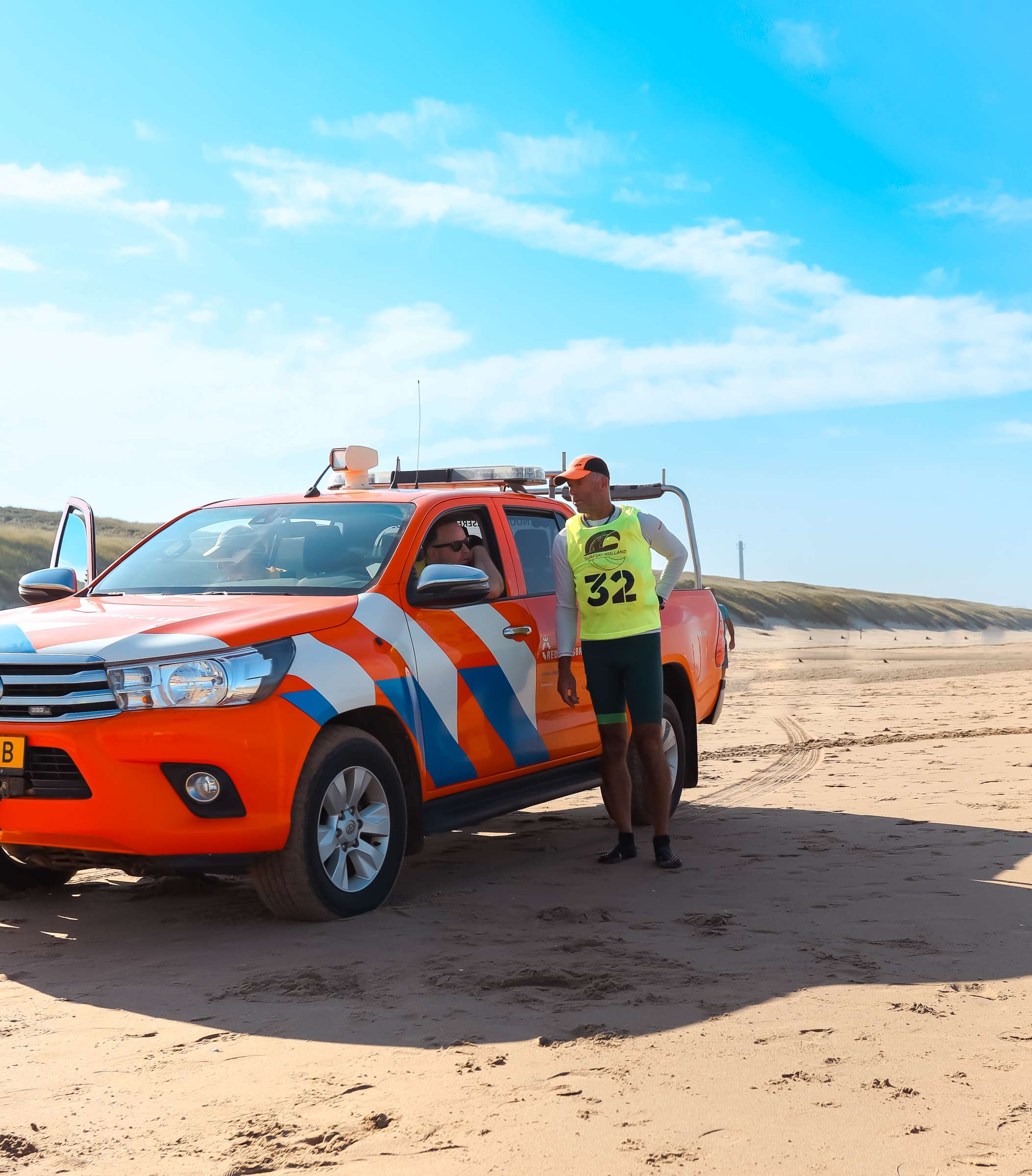 The Noordwijk rescue brigade is willing to follow us in a Jeep on the beach. If anyone drops out during the course, please call 06-41379094. Save this number in your phone. There will also be a life boat.